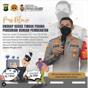 Kapolres Jakarta Selatan Kombes Pol Azis Andriansyah, SH.,SIK.,M.Hum. membeberkan cara kerja petugas PLN atau petugas Dinas Pertamanan gadungan itu melakukan aksinya. “Para pelaku saat mendapatkan targetnya, dia berbagi peran. Adapun kaptennya WN, dia mendatangi rumah calon korbannya, berpura-pura sabagai petugas PLN. Dia ini juga residivis kasus serupa 3 tahun lalu,” ujarnya kepada wartawan, Jumat (10/12/2021).